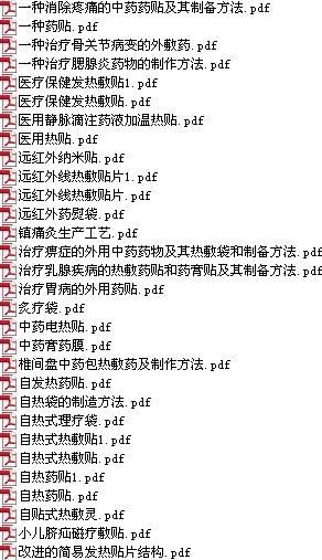 以下目录为专利技术资料文献名称列表。以下所有资料均为电子文档,可以查看、打印、复制,以E-mail形式发送。专利技术资料均为国家专利全文说明书。含技术配方、加工工艺、质量标准、说明书附图等。